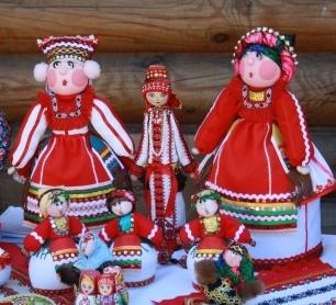 При входе в музей была организована выставка-продажа изделий рузаевских мастеров. Текстильные скульптуры, художественная вышивка, куклы, роспись по дереву, лозоплетение, украшения - всего и не перечислить. Среди всей экспозиции особенно выделялись работы Ольги Буйновой. Ее куклы украсили московскую новогоднюю елку в 2011 году.